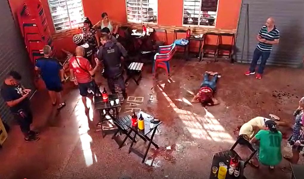 Câmeras de segurança do estabelecimento filmaram o momento da ação criminosa. Um homem chega ao local e atira no jovem, que seria o alvo dele. As outras pessoas acabaram sendo feridas também.