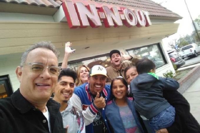 Saudado pelos presentes ao chegar para fazer uma refeição, o premiado ator tirou selfies com os clientes do restaurante e também com a equipe de funcionários. Não demorou para que as fotos viralizassem nas redes sociais, rendendo elogios à generosidade do astro de filmes como Forrest Gump e Apollo 13.