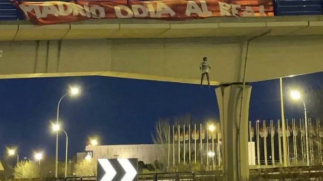 Segundo a imprensa espanhola, o lema que aparece no boneco costuma ser usado por torcedores radicais do Atlético de Madrid.
