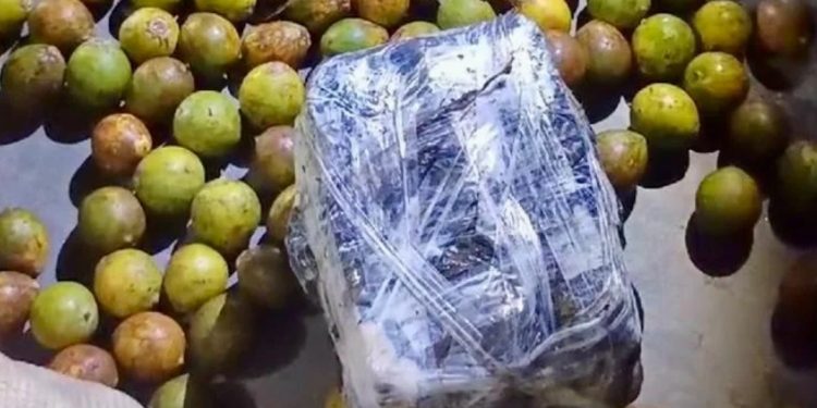 Durante o procedimento, os cães de faro narcótico da PMAM sinalizaram a suspeita de entorpecentes dentro de umas sacas de fibra. Ao terem aberto as encomendas, os policiais encontraram em meio a carga de tucumã, os seis tabletes de maconha do tipo skunk.
