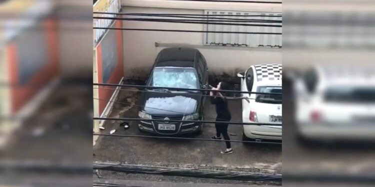 Segundo o Metrópoles, a mulher chegou ao local com o galho na mão. Na gravação, feita por vizinhos, é possível observar os danos causados às janelas, ao capô e aos faróis do veículo.