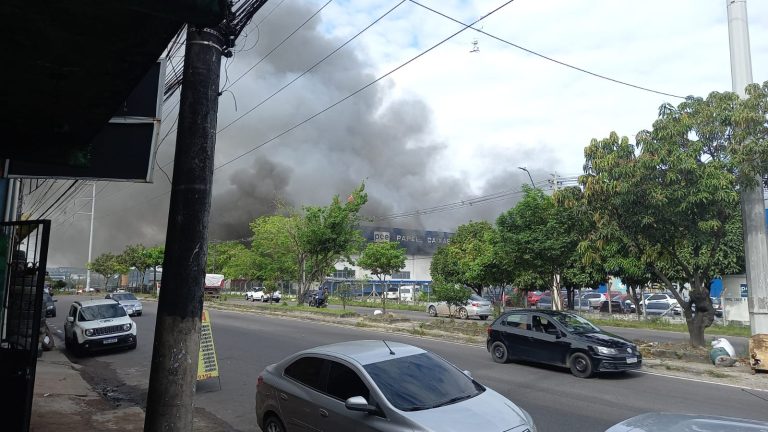 MANAUS (AM) – O trânsito na avenida Autaz Mirim, no bairro Armando Mendes, Zona Leste de Manaus, teve que ser desviado na manhã desta segunda-feira (30). Um incêndio de grandes proporções aconteceu na fábrica PCE LTDA., que produz papel, caixa e embalagens.