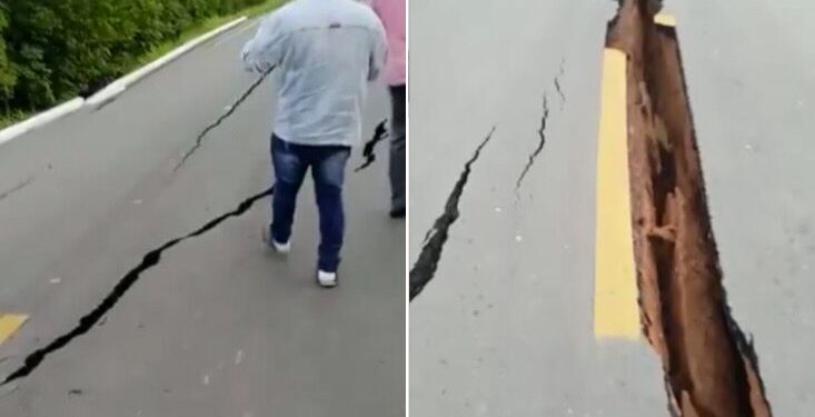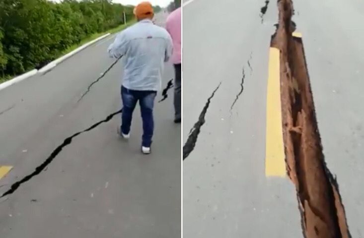 De acordo com a superintendente do Departamento Nacional de Infraestrutura de Transportes (Dnit), Arlene Lamego, a cratera surgiu a partir de um bueiro, após as fortes chuvas que atingiram a região. A correnteza da água causou uma erosão que provocou o desabamento da pista. Como mostra a imagem: