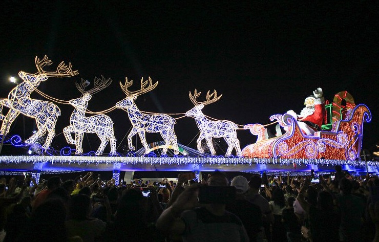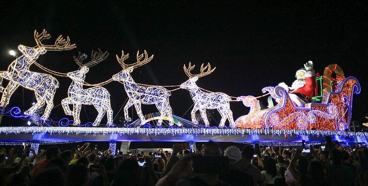 MANAUS (AM) – A Prefeitura de Manaus, por meio do Fundo Manaus Solidária (FMS) e da Secretaria Municipal de Educação (Semed), entregou, neste sábado, (19), mais uma etapa da 2ª edição do “Natal das Águas – Luz da Esperança”, no complexo turístico Ponta Negra, na zona Oeste. Dessa vez, o encanto ficou por conta do trenó, com 25 metros de comprimento e 15 metros de altura, e um grande Papai Noel.