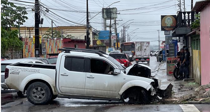 MANAUS (AM) – Três criminosos se envolveram em um grande acidente com dois veículos na avenida Barão do Rio Branco, no conjunto Flores, bairro Parque das Laranjeiras, Zona Centro-Sul de Manaus. Eles assaltaram um salão de beleza na localidade e acabaram se acidentando durante a fuga.