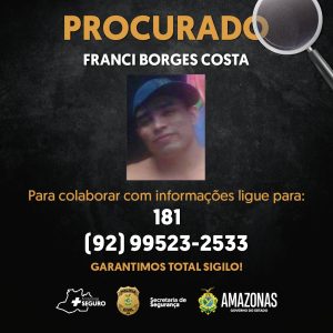 Edinelson Souza da Silva, conhecido como “Dino”; Franci Borges Costa; e Judson Mafra, estão sendo procurados pela Polícia Civil do Amazonas por envolvimento nos crimes de tráfico de drogas, furtos e estupro.