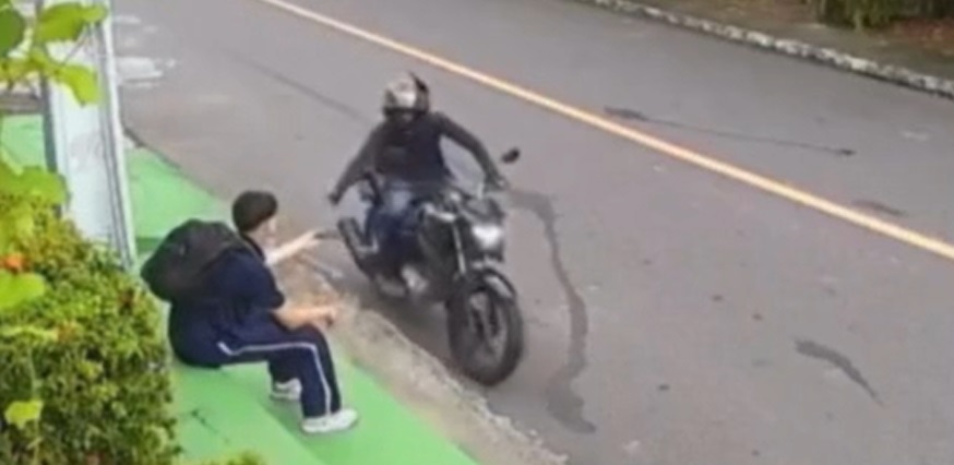 MANAUS – Um estudante teve o celular roubado por um bandido de moto nesta quinta-feira (9), no Conjunto Jardim de Versalhes, bairro Planalto, zona centro-oeste de Manaus. A câmera de uma casa flagrou o crime.