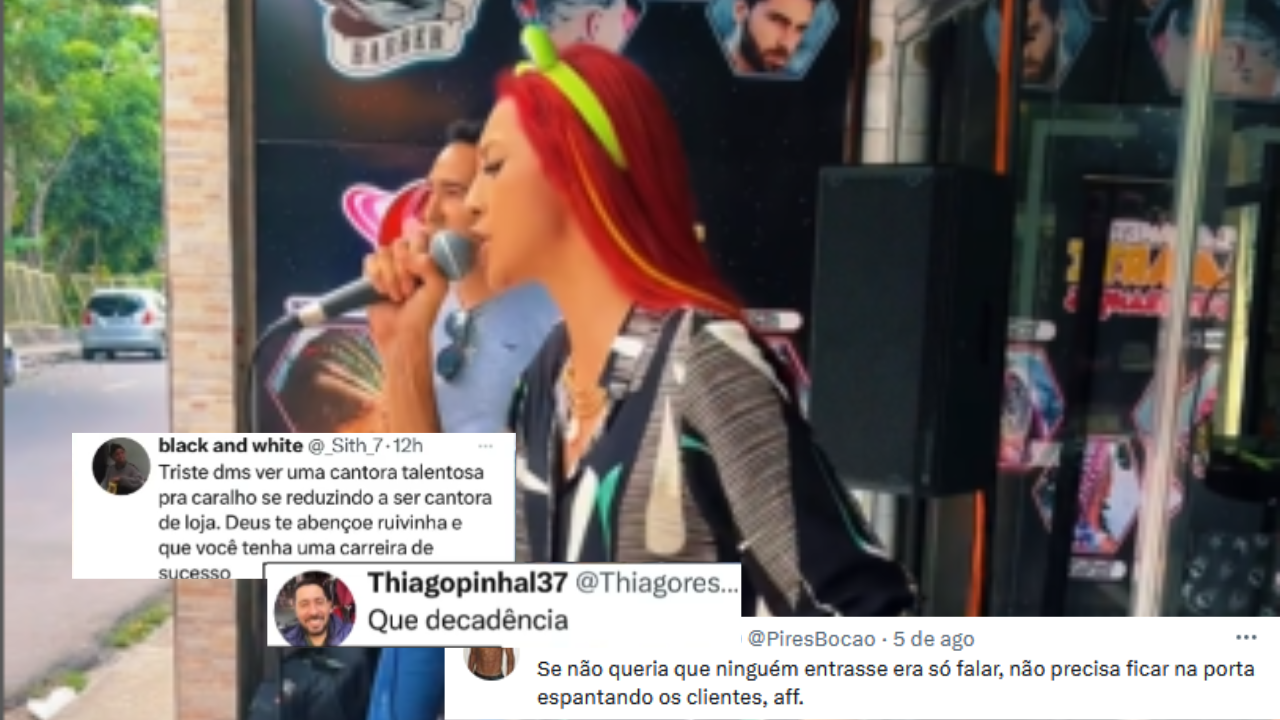 Com uma lojinha ‘recém’ inaugurada no Coroado, ela decidiu dar uma palhinha e soltar o vozeirão em frente ao próprio estabelecimento e animar o publico que foi fazer as comprinhas do fim de semana. Contudo, após a divulgação do vídeo, a ruiva foi duramente criticada na antiga plataforma do passarinho.