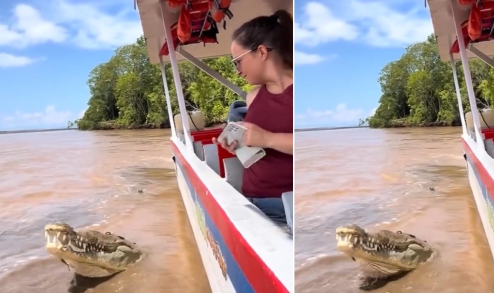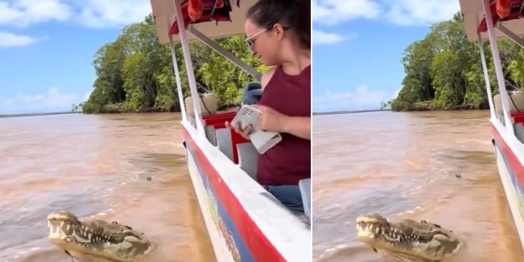 AMAZÔNIA – A cena de uma turista filmando bem de pertinho um jacaré gigante viralizou nesta sexta-feira no Amazonas. Apesar de não haver a localização e nem a data da filmagem, internautas se espantaram com a calma da mulher.