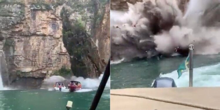 MINAS GERAIS | Um vídeo gravado por ocupantes de uma das embarcações que estavam próximas ao local onde parte de um cânion desabou neste sábado (8), no Lago de Furnas, em Capitólio (MG), mostra que, minutos antes da tragédia, turistas e barqueiros já haviam percebido que pedras estavam descendo pela encosta e que havia a iminência de o rochedo gigantesco despencar sobre a água. Nas imagens, eles tentam, sem sucesso, avisar aos outros barcos sobre o perigo.