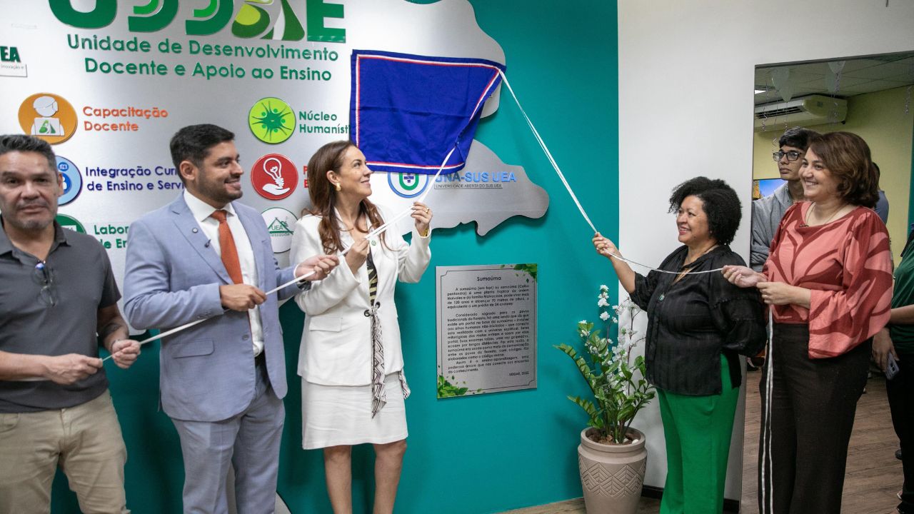 A Unidade de Desenvolvimento Docente e Apoio ao Ensino da Universidade do Estado do Amazonas (Uddae/UEA) celebrou, nesta segunda-feira (22/9), três anos de fundação com a inauguração de dois novos núcleos estratégicos: a Aldeia da Transformação Digital na Saúde e Inovação na Amazônia – Saúde, Tecnologia e Inovação – (Aldtec) e o Grupo de Pesquisa Saúde, Inovação e Tecnologia na Amazônia (Sita). A cerimônia contou com a presença do reitor da UEA, Prof. Dr. André Zogahib, e reforçou o papel da instituição como referência em inovação, ciência e tecnologia aplicadas à saúde na região.