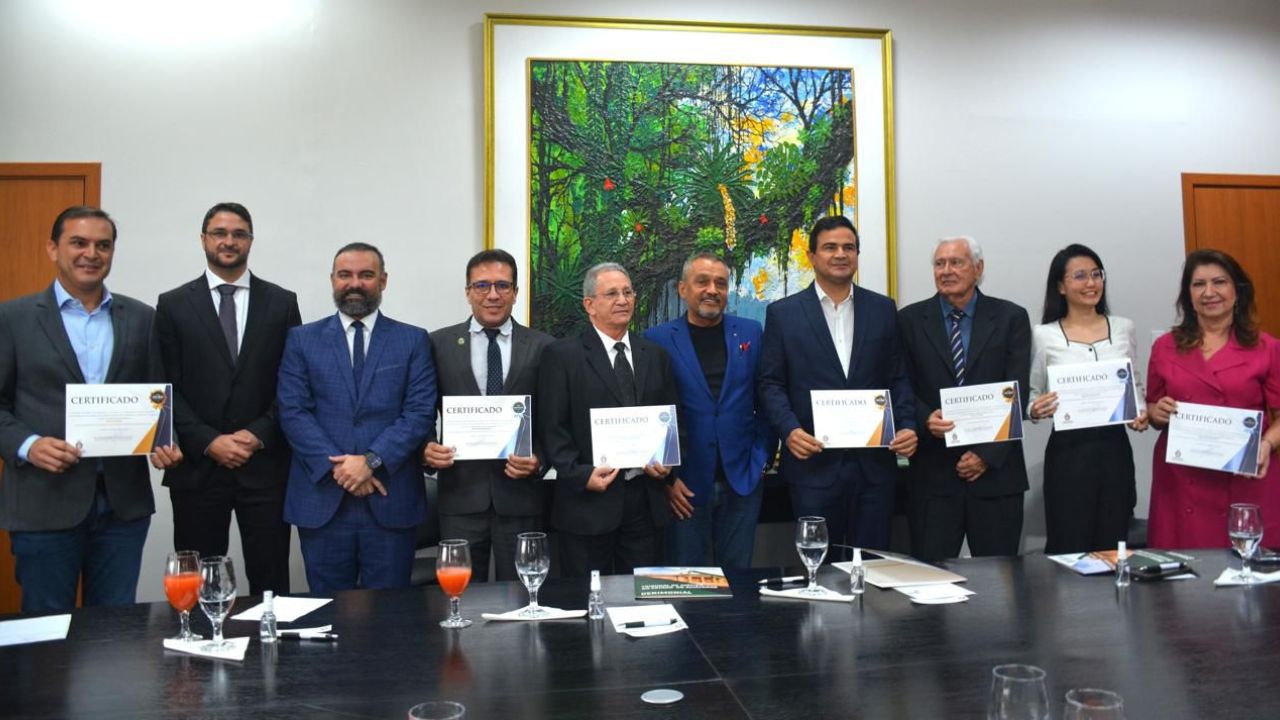 Representantes das entidades e órgãos agraciados estiveram presentes para receber a honraria, que enfatiza a postura proativa e o empenho da UEA em manter uma situação fiscal e judicial impecável. pelo cumprimento de suas responsabilidades administrativas e financeiras. O selo “Diamante” é um marco de seriedade para a UEA, pelo cumprimento de suas responsabilidades administrativas e financeiras.