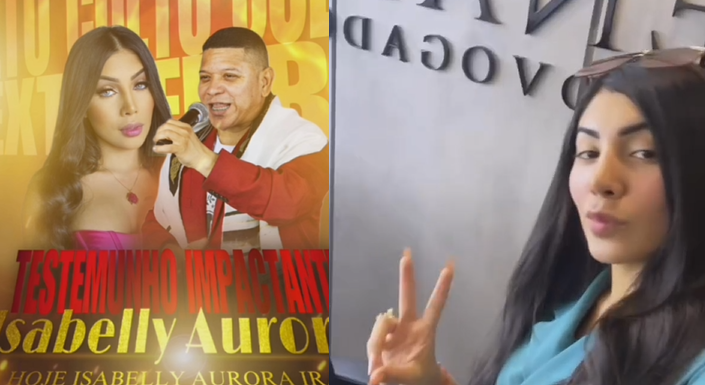 O culto será a partir das 19h, no bairro Cidade Nova, Zona Norte de Manaus. “Testemunho Impactante. Hoje Isabelly Aurora irá dar seu testemunho, a partir das 19h”, diz o vídeo onde ela aparece ao lado do líder religioso apóstolo Moisés.