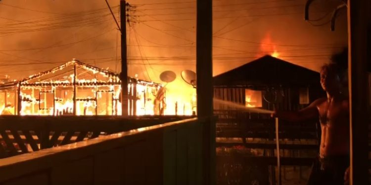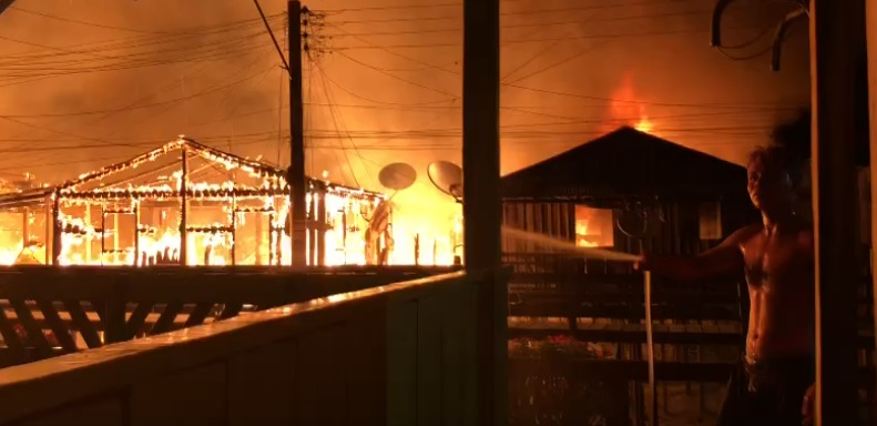 Ainda não se sabe a causa da tragédia, que queimou ao menos 13 casas e deixou 70 moradores sem casa. Vídeos do fogo caíram na rede social.