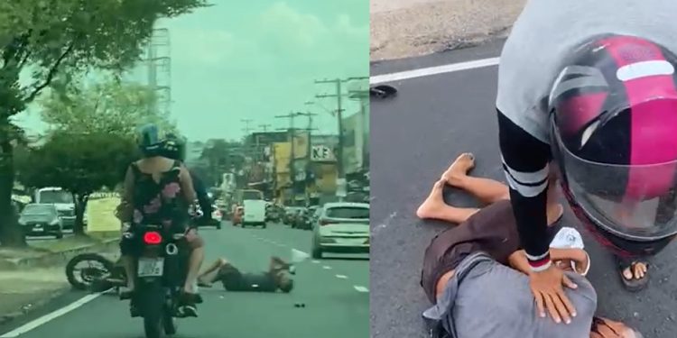 O homem atravessava a avenida Grande Circular, na zona leste de Manaus, quando foi atingido e começou a sangrar no chão. As imagens são desesperadores. Não se sabe o motivo da briga, mas o flagra de crime no trânsito é claro.