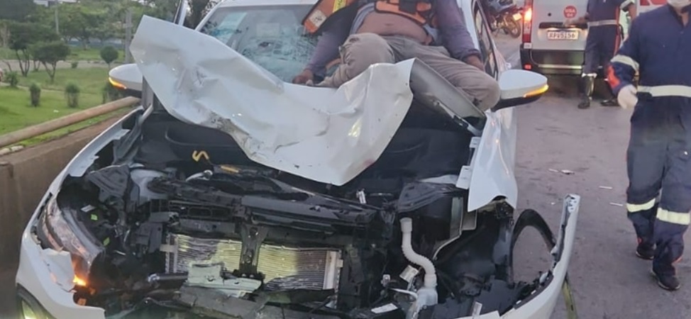 O homem levava a esposa para o trabalho e ela está gravemente ferida. O motorista do carro foi identificado como Fábio Moreira da Silva, de 40 anos. Ele alega que confundiu as pistas e entrou na contramão.