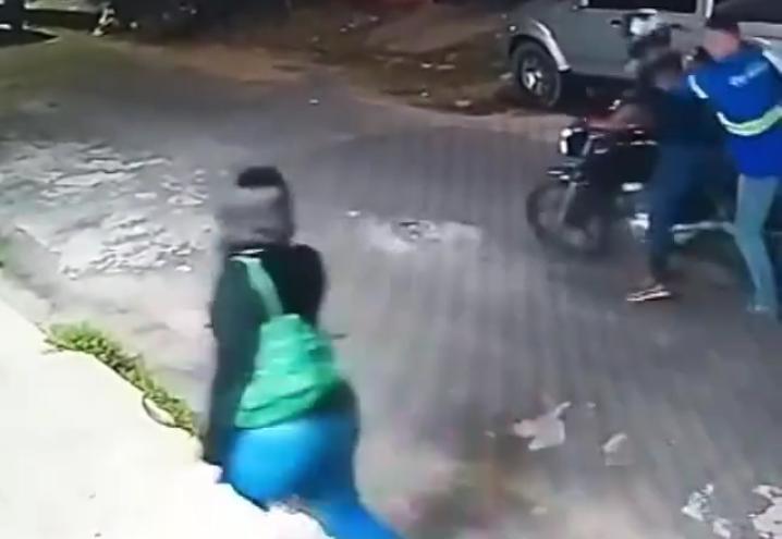 Nesta quinta-feira (20), um mulher viveu momentos de terror, ao ser assaltada no momento em que retornava para casa, no bairro Jorge Teixeira, Zona Leste. Nas imagens compartilhadas nas redes sociais, dois criminosos em uma motocicleta, um deles com a farda da Águas de Manaus, aborda a mulher e chega a ameaçá-la com uma arma.