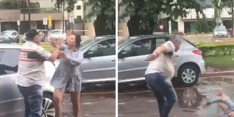 Toda a ação foi filmada e mostram a vítima levando dois socos no rosto, sendo puxada pelos cabelos e caindo no chão.