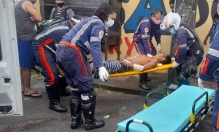 O Serviço Móvel de Urgência (Samu) foi acionado e encaminhou o homem para o Hospital e Pronto-Socorro Platão Araújo. O estado de saúde dele é grave.