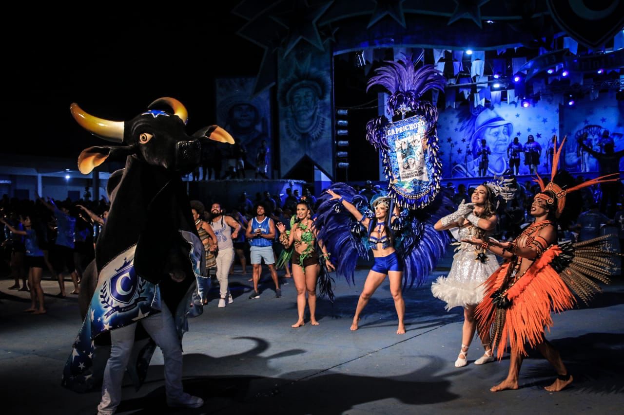 PARINTINS (AM) – O Povo Caprichoso brincou de boi nesta terça-feira, 20, na primeira noite de ensaio técnico no curral Zeca Xibelão. O bumbá prepara um espetáculo vitorioso para o 56° Festival Folclórico de Parintins e reuniu itens individuais e coletivos na preparação ao bicampeonato em 2023.