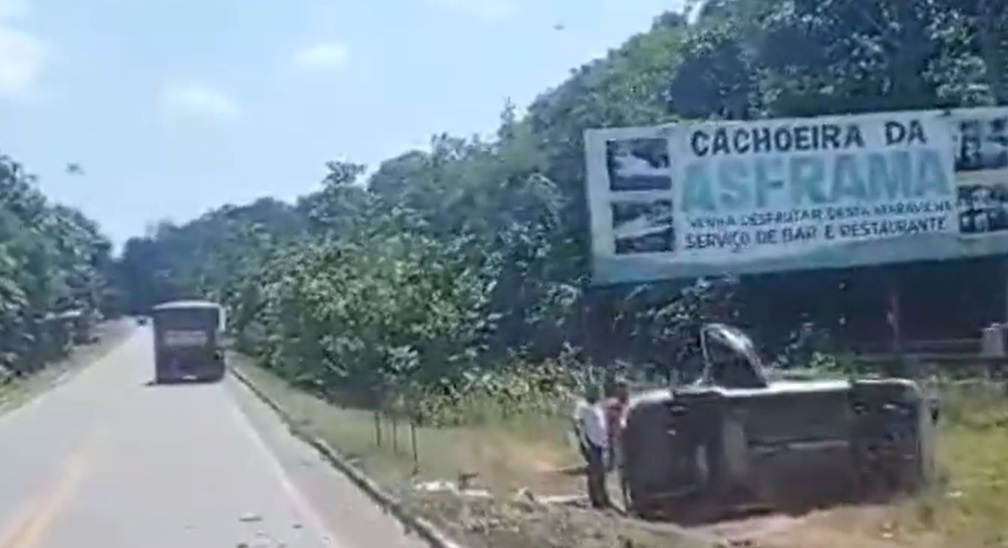 PRESIDENTE FIGUEIREDO – Uma carreta acertou a traseira de um carro na tarde de hoje (2) na BR-174, perto da Asframa, em Presidente Figueiredo. De acordo com testemunha o impacto foi grande. A imagem carro virado no acostamento comprova isso.
