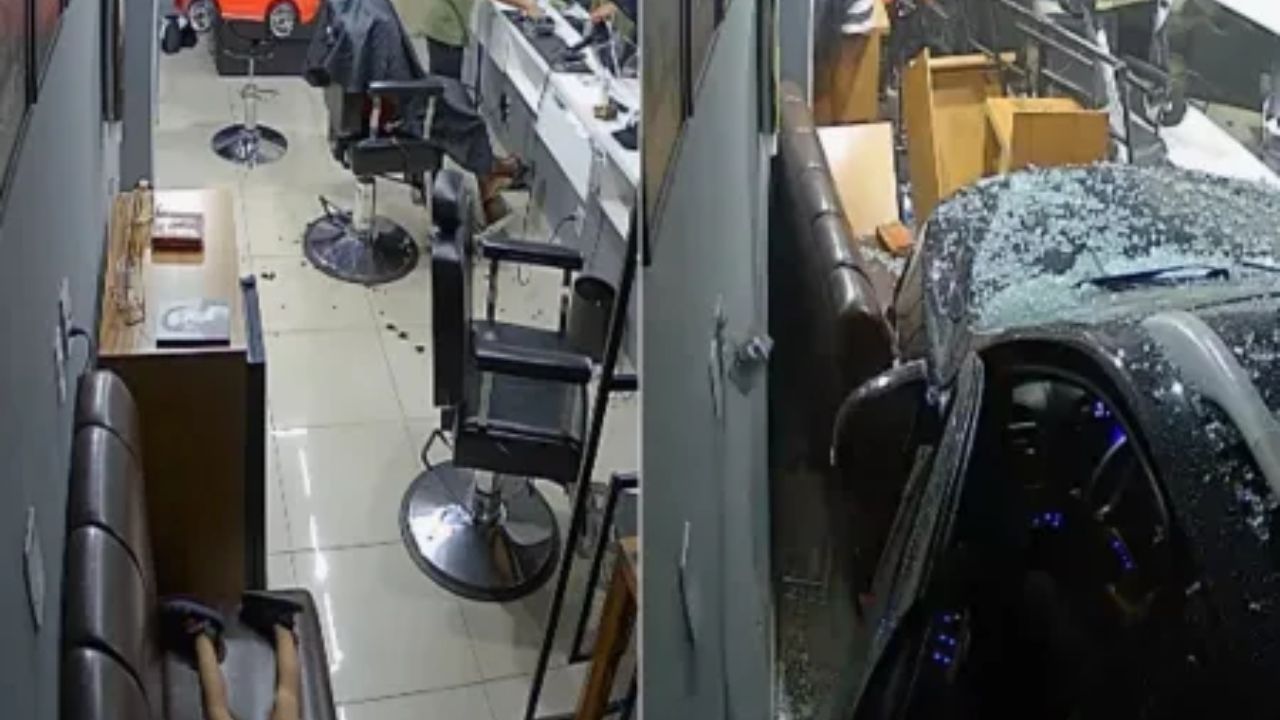 No momento do acidente, um homem cortava o cabelo enquanto o filho, de 4 anos, aguardava no local. Com o impacto, a criança chegou a ficar presa sob o carro, mas sofreu apenas ferimentos leves, segundo o Corpo de Bombeiros.
