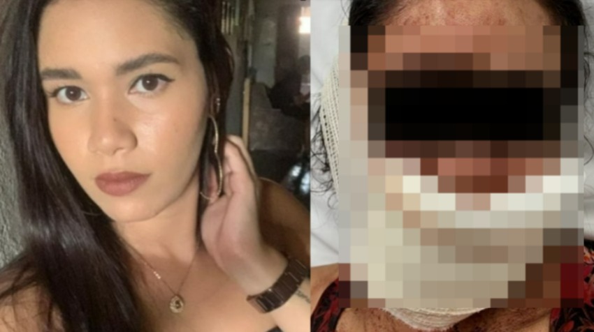 Maria Nadine Celestino de Sousa Mesquita, de 28 anos, está toda com a face toda retalhada.
