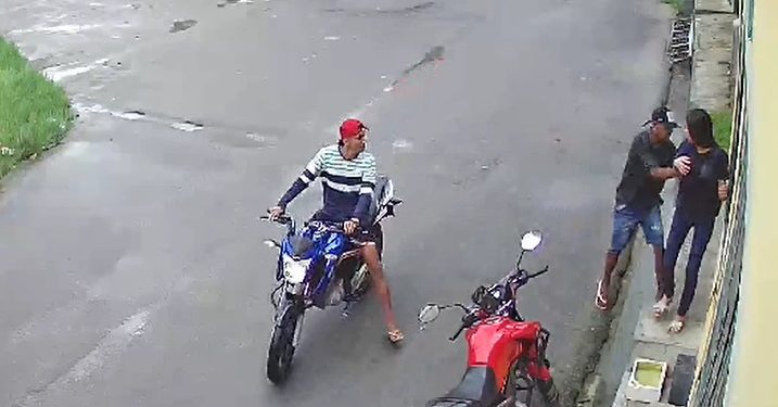 MANAUS – Uma jovem indefesa foi cercada por bandidos de moto em Manaus e a cena foi toda filmada por câmeras de segurança nesta terça-feira (23), na rua Garça Parda, bairro Grande Vitória, zona leste.