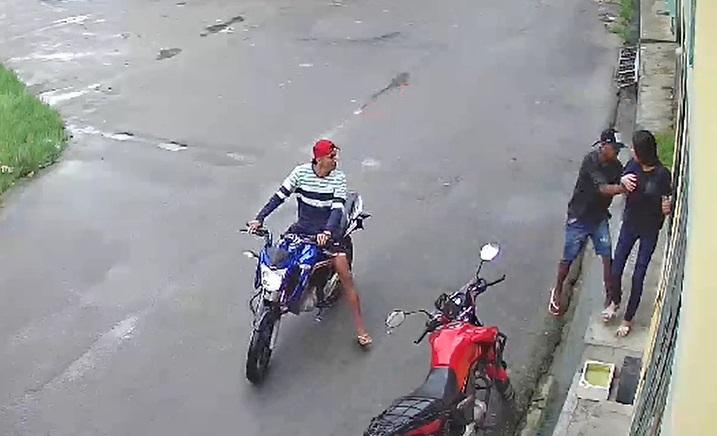 MANAUS – Uma jovem indefesa foi cercada por bandidos de moto em Manaus e a cena foi toda filmada por câmeras de segurança nesta terça-feira (23), na rua Garça Parda, bairro Grande Vitória, zona leste.