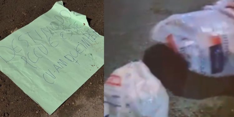 O corpo estava esquartejado, com braços, pernas e cabeça separados do tronco. Ao lado das sacolas, um bilhete foi deixado escrito: “Destino do PCC é esse. CV-AM que impera”.
