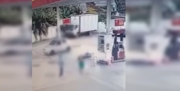 Os dois brigaram e ele acabou levando um tiro diante da câmera de posto. Em seguida, o suspeito fugiu com uma mulher. Os dois foram ao estabelecimento para usar o banheiro.