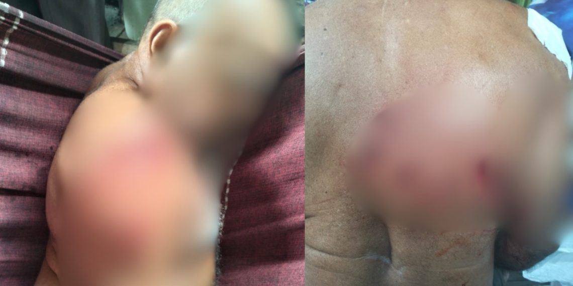 As imagens mostram ferimentos no braço esquerdo e também nas costas do idoso.