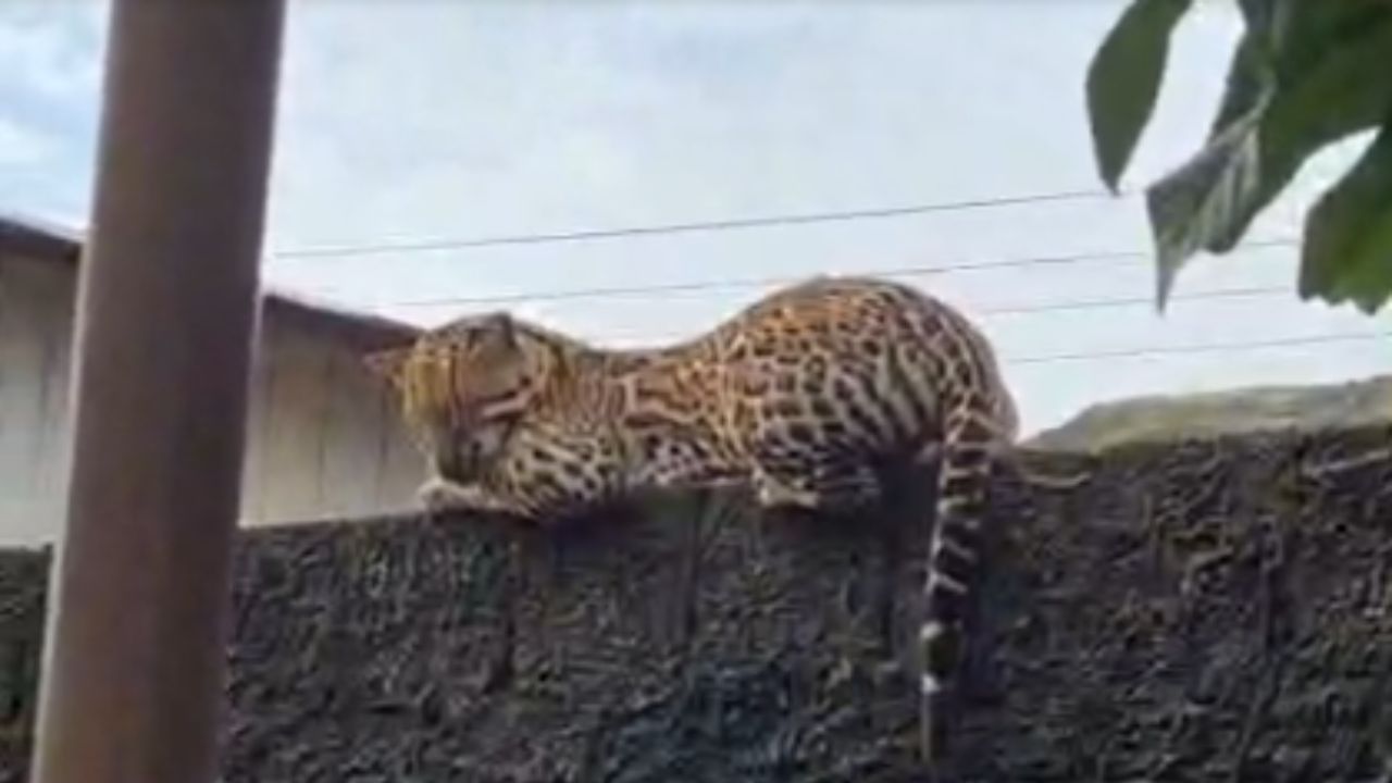 CARAUARI (AM) – Uma jaguatirica foi flagrada em cima do muro de uma residência em Carauari, no Amazonas, nesta quinta-feira (5).