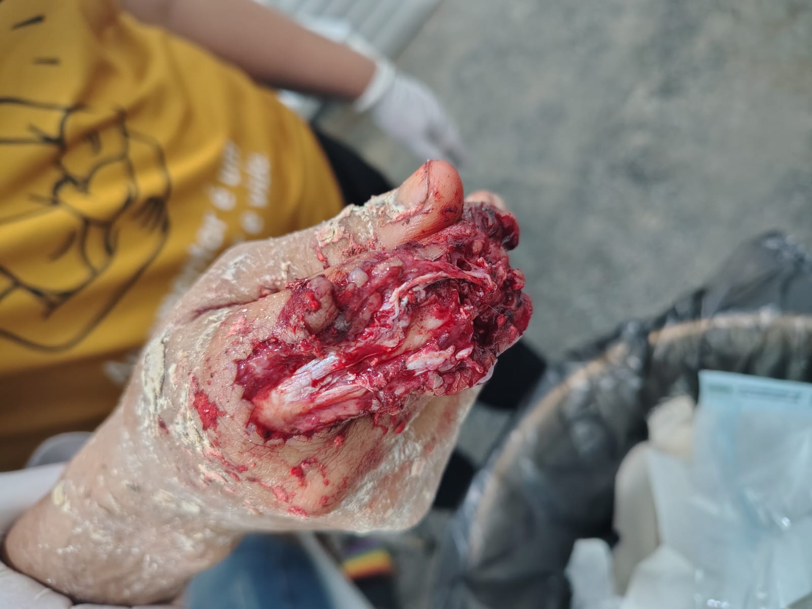 A vítima foi socorrida e encaminhada para atendimento médico no município. Imagens compartilhadas nas redes sociais mostram como ficou a mão dela.