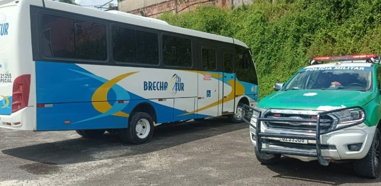 O veículo é da Brecha Tur, e foi usado pelo homem para matar a esposa. A imagem dele dentro do carro, enforcado, circula nas redes sociais. A criança foi resgatada sem ferimentos .