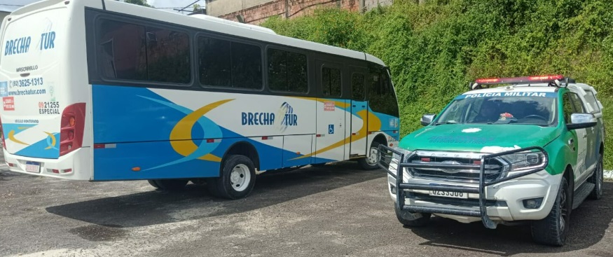 O veículo é da Brecha Tur, e foi usado pelo homem para matar a esposa. A imagem dele dentro do carro, enforcado, circula nas redes sociais. A criança foi resgatada sem ferimentos .