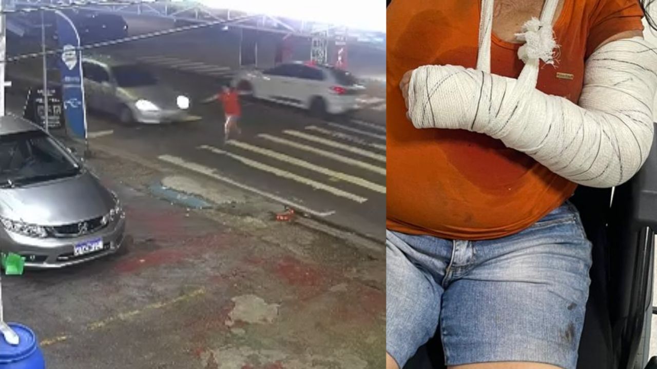 Imagens que circulam nas redes sociais mostram o momento em que um veículo modelo Celta, de cor prata, se aproxima e atinge a pedestre. Com o impacto, a vítima é arremessada sobre o capô do automóvel e acaba caindo na calçada.