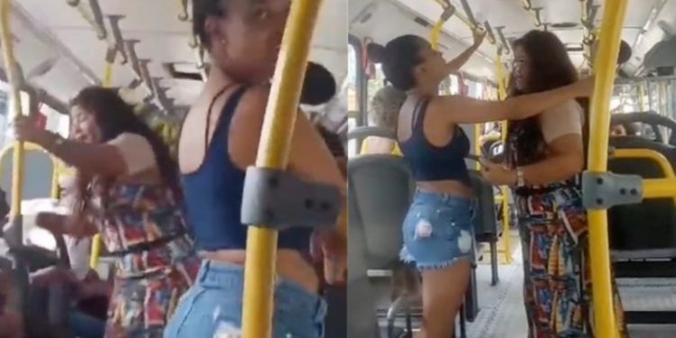 Viralizou nesta quinta-feira (28), o vídeo de duas mulheres brigando, supostamente, por um presente de Deus, dentro do transporte público coletivo.