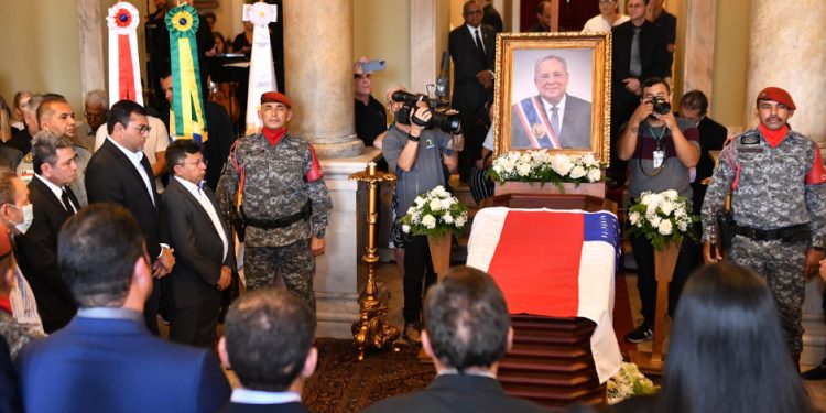 MANAUS (AM) – Começou na tarde desta quinta-feira, 16/2, o velório do ex-governador do estado, Amazonino Mendes, realizado no no hall do Teatro Amazonas, Centro. O político morreu no último domingo, 12, em São Paulo (SP), em decorrência de problemas respiratórios.