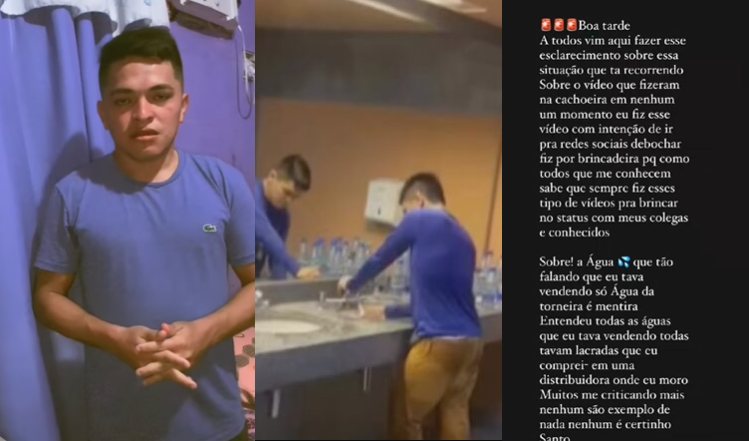 Sobre o vídeo na cachoeira, Erick disse que fez por brincadeira e que é conhecido pelos amigos por sempre fazer vídeos do tipo para “zoar”.