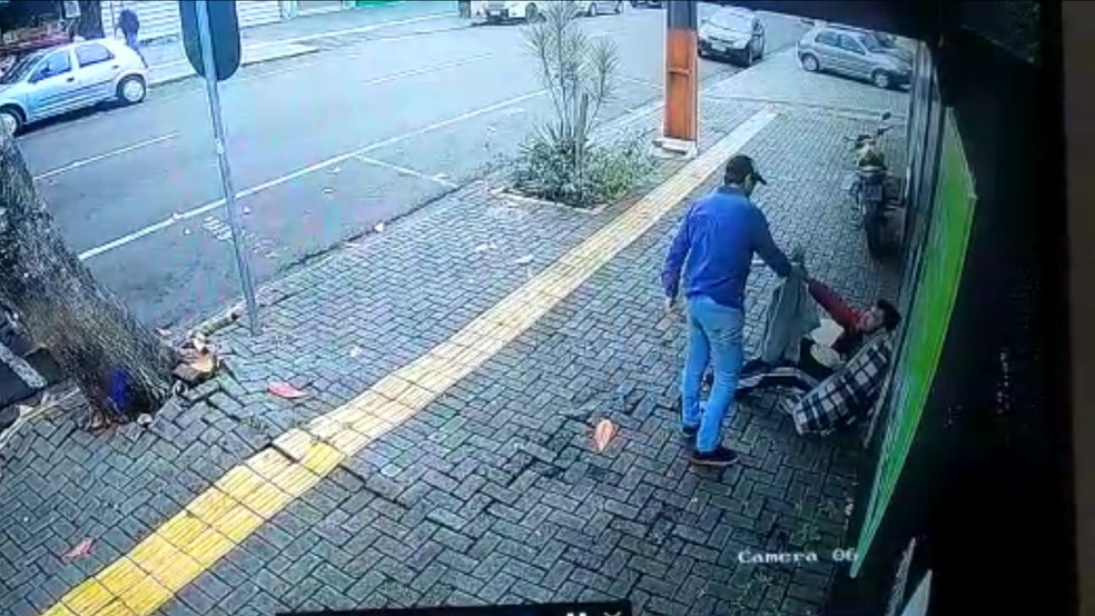 PARANÁ| Uma câmera de monitoramento flagrou o momento em que um vendedor de paçoca dá a própria blusa de frio para uma pessoa em situação de rua, na tarde de segunda-feira (28), no Centro de Foz do Iguaçu, no oeste do Paraná.