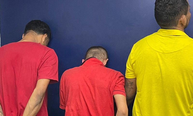 Os criminosos foram presos em um posto de gasolina na Compensa, após perseguição policial. Eles estavam com uma arma falsa, segundo a polícia.