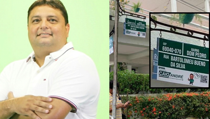É que o vereador Caio André (PSC) teria mandando fazer placas e incluiu uma logo com o nome dele. A mudança não teria autorização da Prefeitura de Manaus.