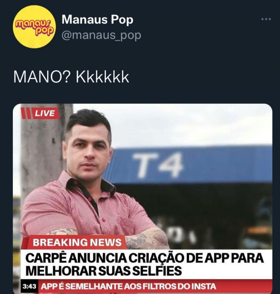 MANAUS (AM) – Conhecido por ser um perfil do Twitter que posta fofocas, notícias de política, memes e entretenimento, principalmente, a página Manaus Pop foi processada pelo vereador Capitão Carpê (Republicanos) por uma postagem meme do parlamentar.