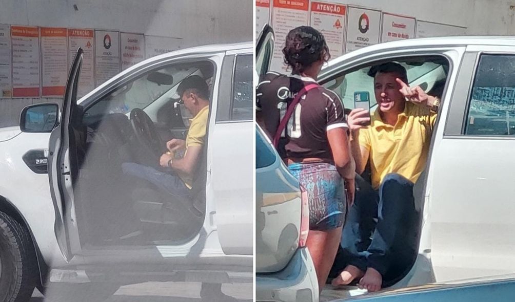 Pouco tempo depois, a sua ‘companhia’ chega e os dois iniciam uma conversa, com direito ao parlamentar gravar o momento com o celular.