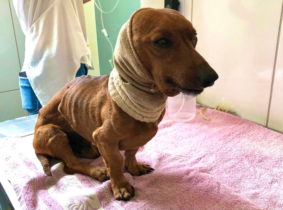 De acordo com a União Protetora dos Animais (UIPA), o animal tinha um corte profundo e o procedimento foi difícil, já que teve que retirar parte da pele para enxertar os ferimentos do pescoço, que ficou infeccionado após a mutilação e contato com a terra.