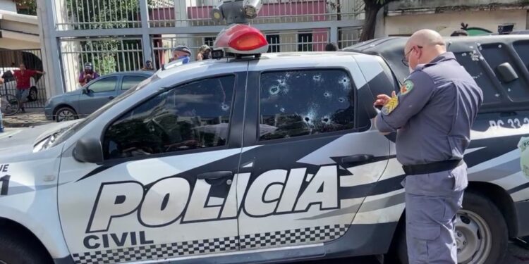 MANAUS – AM | Uma viatura da Polícia Civil foi alvo de atiradores em frente ao Fórum Ministro Henoch Reis, na tarde desta quinta-feira (6). O caso aconteceu por volta das 14h30. O fórum fica localizado na Rua Valério Botelho de Andrade, bairro São Francisco, zona Centro-Sul de Manaus.