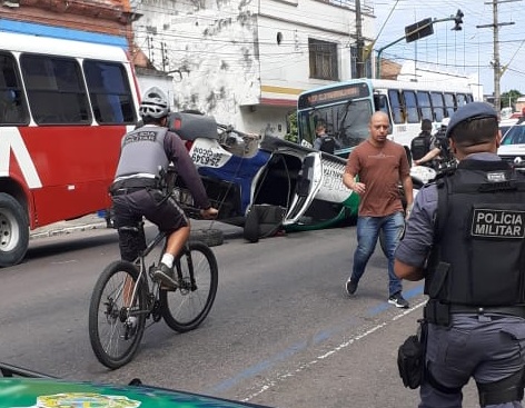 Manaus- AM| Uma viatura da 24a Companhia Interativa Comunitária (Cicom) colidiu com um carro S10 na manhã desta quinta- feira (2), na avenida Epaminondas, no Centro de Manaus. Um sargento e um cabo da Policia Militar estavam no veículo e ficaram feridos.
