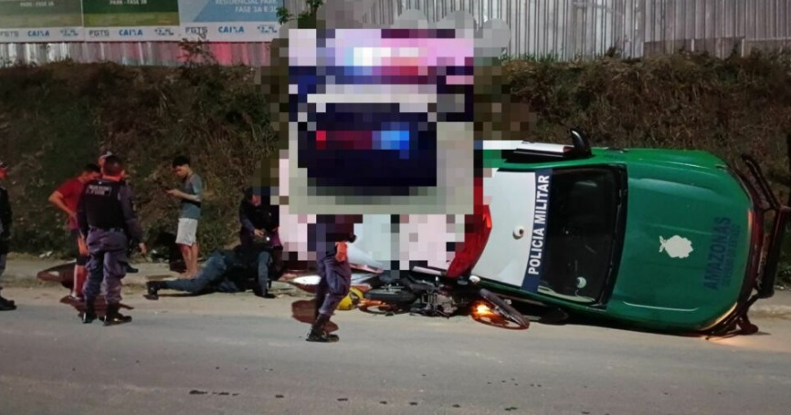 MANAUS – Uma viatura da PM capotou nesta quinta-feira (7) no Gilberto Mestrinho, Zona Leste de Manaus, após um acidente com uma moto.