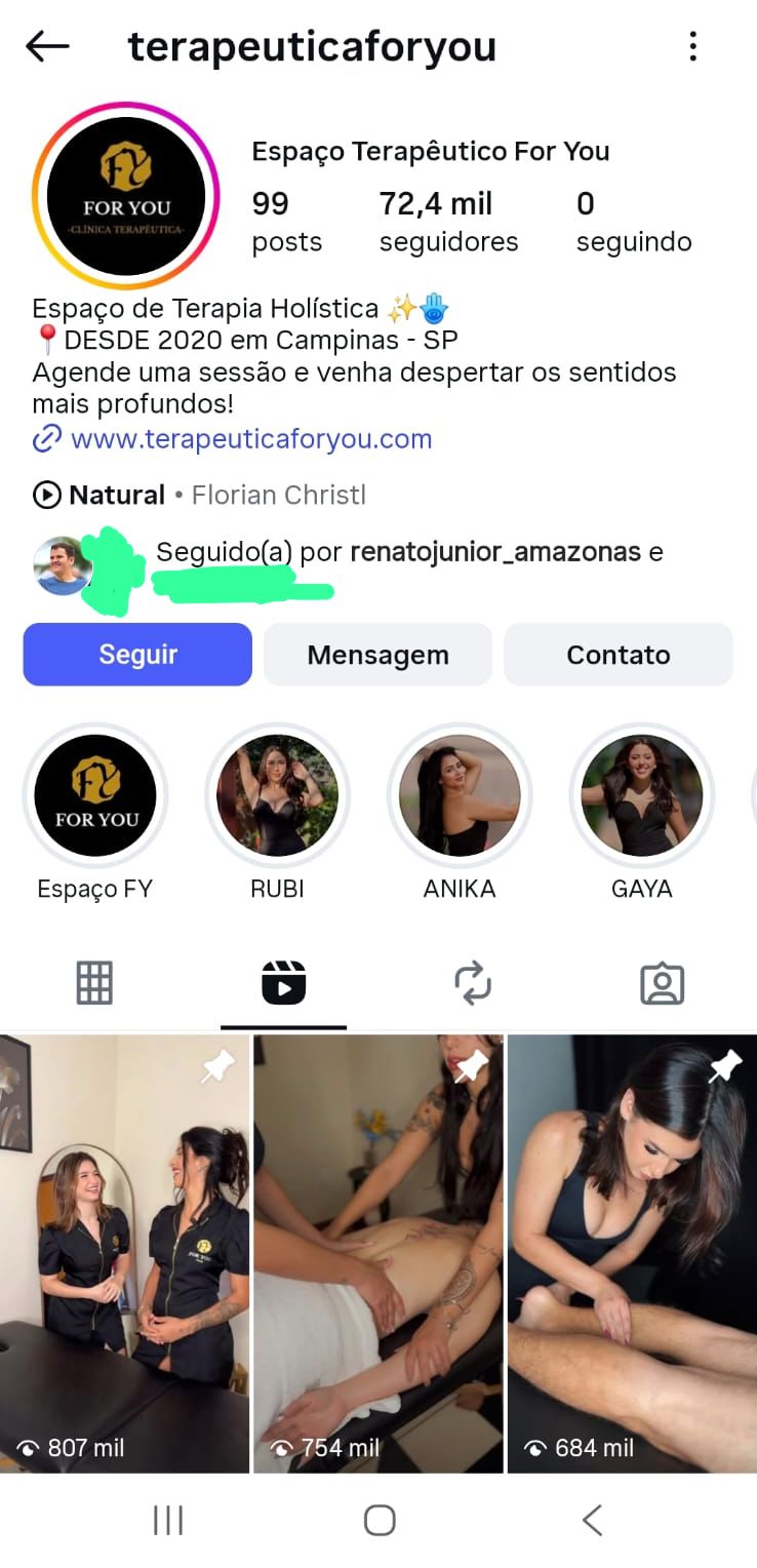 A conta @terapeuticaforyou, que acumula 72,6 mil seguidores no Instagram – sendo um deles o próprio vice-prefeito e secretário municipal de obras – mantém um site com fotos sugestivas de profissionais que adotam nomes como “Aysha”, “Naya” e “Arya”. As imagens, com decotes exagerados e roupas justas, são acompanhadas por números de telefone para contato e recebem comentários entusiasmados de seguidores que não disfarçam o interesse: “Posso ficar viciado nesse bem estar”, escreveu um deles.
